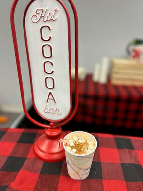 Perfect for any festive event, our Hot Cocoa Bar offers a rich, comforting treat that's sure to delight your guests. Indulge in steaming hot cocoa, perfectly complemented by classic toppings like peppermint canes, fluffy marshmallows, and decadent whipped cream. The complete setup includes elegant tablecloths, charming decor, and an attractive booth, creating a cozy and inviting station for everyone to enjoy.