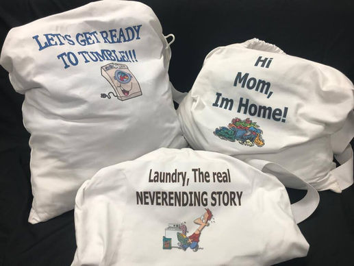 Looking for the perfect gift for a college student? How about personalized laundry bags pressed at your event! Add fun sayings like "Hi Mom! I'm home," "Let's get ready to tumble," or "Laundry, the Never Ending Story" for a playful and practical gift.